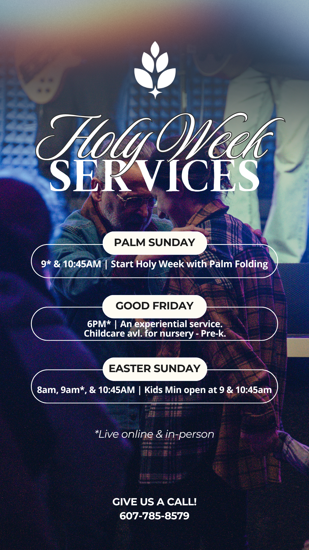 View Larger Image Holy Week Services Honor Holy Week by choosing your service times and making it happen! Heather Vestal2026-03-23T15:34:16-04:00 Share This Post, Choose Your Platform! FacebookXLinkedInTumblrPinterest Related Posts Gallery Easter Services March 23rd, 2026 | 0 Comments Gallery Laundry Love January 1st, 2025 | 0 Comments